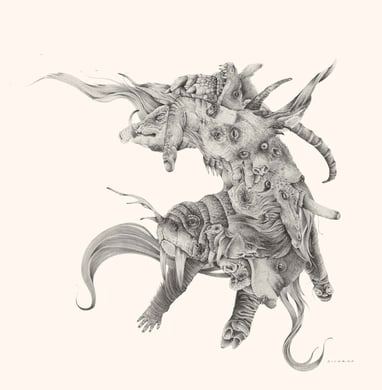 When I embarked on this project, I lacked a clear vision of what to create. My intention was to delve into nature, capturing its inherent harmony while also highlighting its delicate equilibrium. I began by meticulously rendering fragments of various animals, exploring innovative ways to interconnect them, ultimately achieving a sense of fluidity. As I immersed myself in the process, I discovered the profound allure of the evolving shapes. A guiding principle of mine was to refrain from using an eraser and instead surrender to my instincts, allowing them to guide my artistic expression. Process (here)